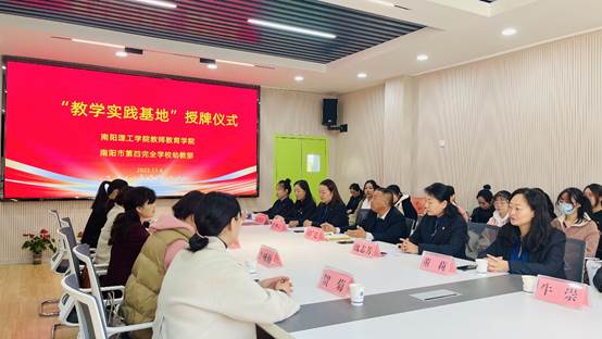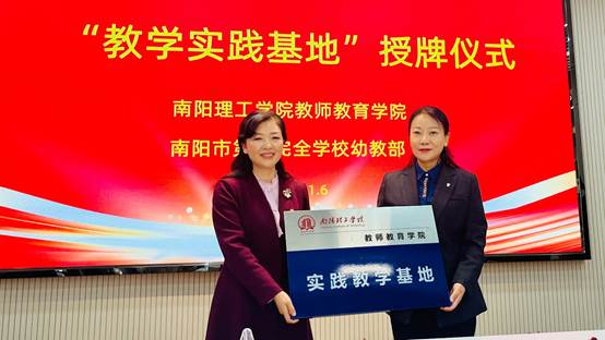 本网讯(特约记者/邹方方)为提升学前教育专业人才培养质量,拓宽毕业生就业渠道,进一步推动产学研一体化深度融合,为学生专业实习实训和就业工作搭建实践育人、高质量合作平台。2023年11月6日,南阳理工学院教师教育学院与南阳市第四完全学校幼儿园部举行实践教学基地签约授牌仪式。