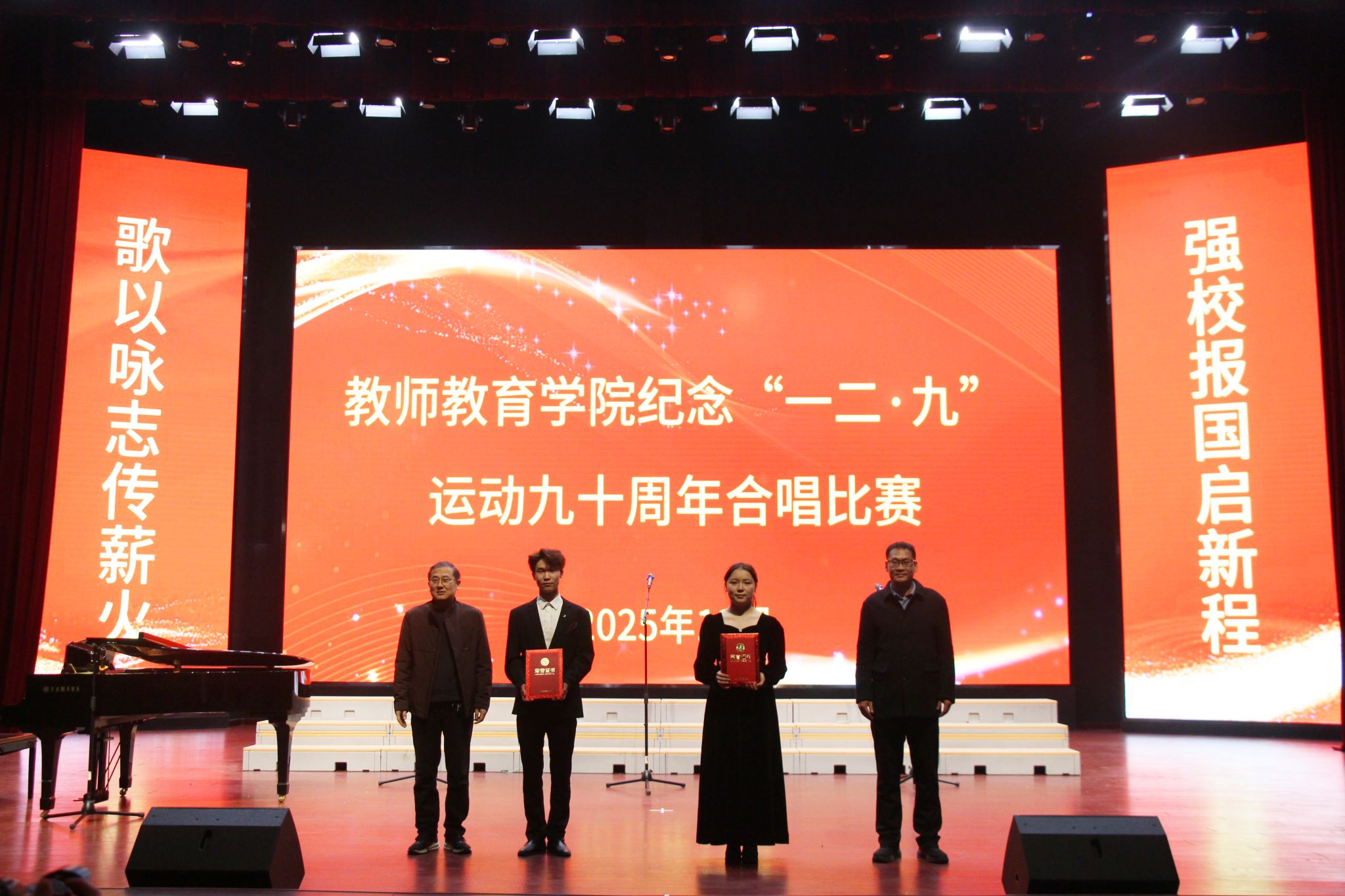 此次合唱比赛不仅展示了学院音乐专业学生的舞台专业能力,更通过演绎红色经典,引导师生重温历史、坚定初心。同学们表示,将铭记历史,传承爱国精神,努力成长为有理想、有本领、有担当的新时代青年。(摄影记者/王辰宇 储润涵 林声涛 邸梦雅 校对/杨春钰 叶华健 审核/陈同勉)