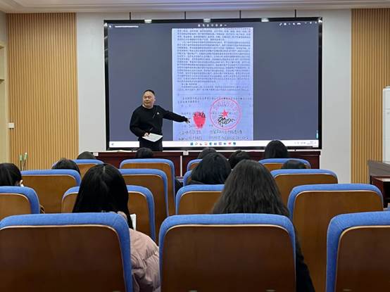 聂冬栋指出,高校国家助学贷款的目的是帮助家庭困难的在校大学生解决在校期间所需要的生活和学习费用。随后,他针对合同签订时可能遇到的问题进行耐心的讲解,并提醒大家要诚信贷款,树立诚信、感恩观念。最后聂冬栋展示合同模板供大家参考,并发放开发银行高校助学贷款借款合同及国家开发银行高校助学贷款承诺书,指导申请贷款学生签字并按手印。