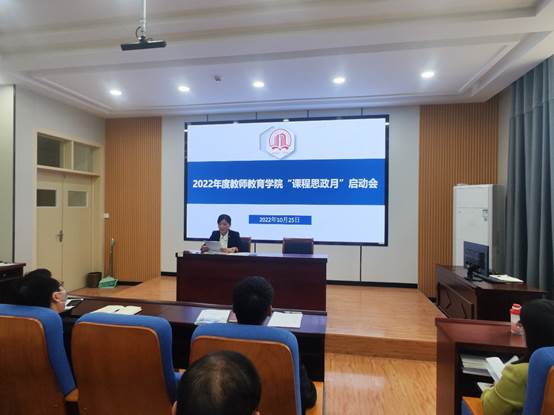 本网讯(记者/金博)为深入贯彻落实全国高校思想政治工作会议,落实立德树人根本任务,提升教师的课程思政意识和课程思政建设水平,10月25日下午,教师教育学院召开2022年度“课程思政活动月”启动会,会议由院长王岩主持,学院党委书记冯建、副书记陈同勉、副院长钞艺伟、司冬梅、周凤瑾及全体教职工参加启动会。