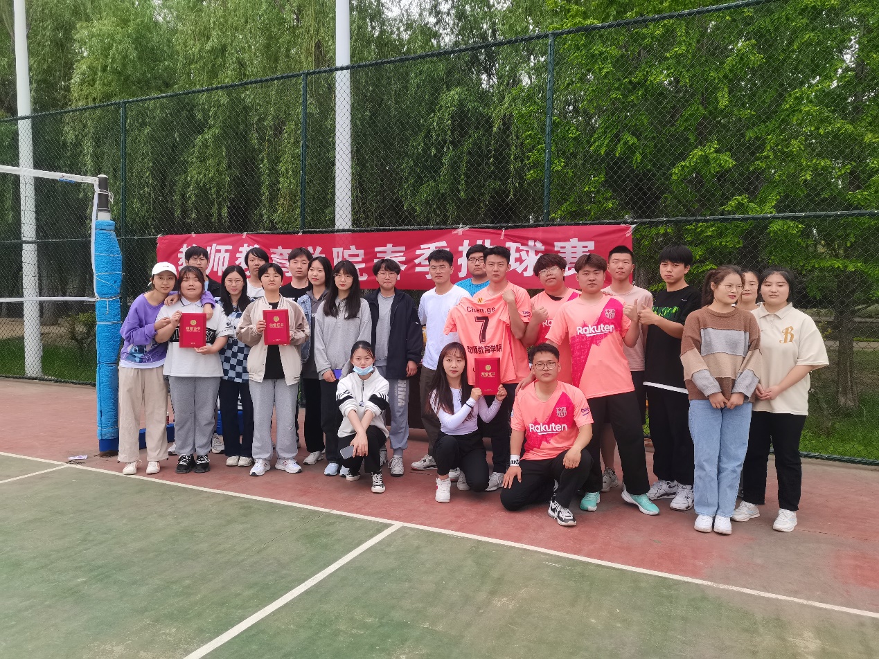 本网讯(特约记者/何雷雨 学生记者/陈怡诺)为丰富同学们的课余生活,锻炼大学生强健体魄。2022年4月16日至17日,教师教育学院在东南校区排球场举办“以排球之名,架友谊桥梁”春季排球赛。