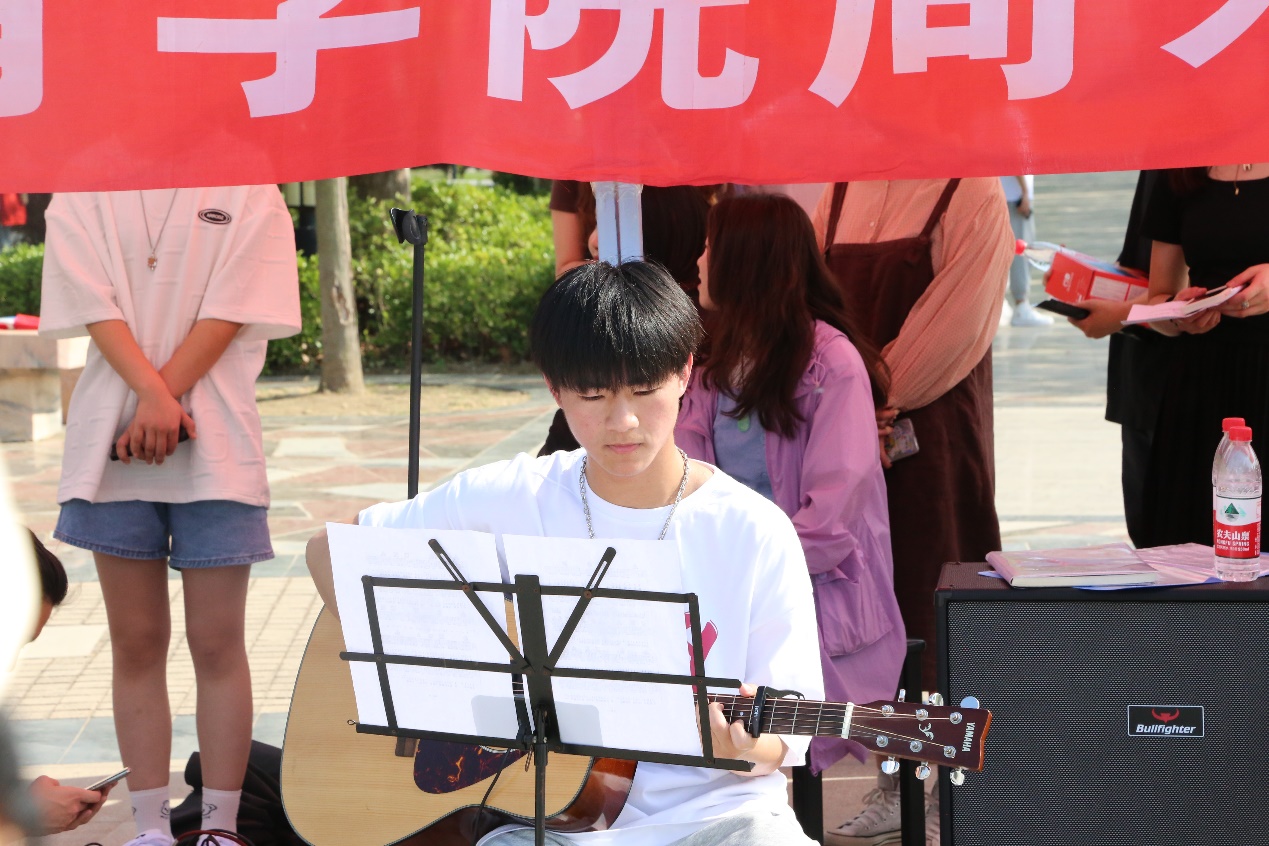活动伊始,《骑独轮车》表演瞬间点燃全场,吸引众多同学驻足观看。四手联弹《保卫黄河》,古筝合奏《井冈山上太阳红》等节目无一不表达了青年学子在追梦路上铭记历史、不忘初心、砥砺前行的坚定信念;歌曲《晴天》、《其实都没有》、《意外》、《狐狸的童话》等节目,展现了当代青年积极昂扬的精神面貌;古琴独奏《酒狂》,琴笛合奏《阳关三叠》则体现了学生们对传统艺术的传承与发展。形式多样、精彩纷呈的表演,博得观众们的阵阵掌声。活动最后,全体参演人员献上舞蹈《日不落》,本次活动顺利落幕。