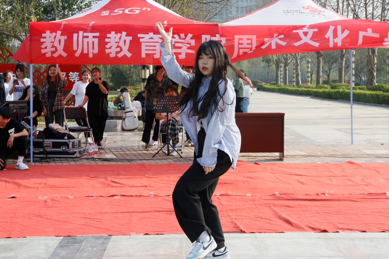 本网讯(学生记者/欧阳颖)为了营造良好的校园文化风气和学习氛围,提升我院学生的综合素质。2022年3月13日,教师教育学院在齐贤广场举办周末文化广场活动,数百名学生驻足观看。