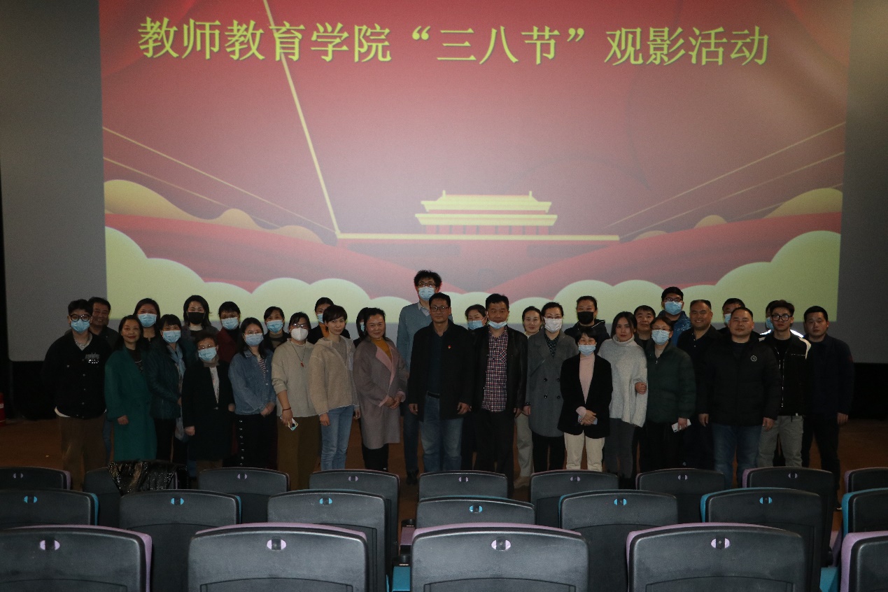 本网讯(特约记者/何雷雨)2022年3月8日,我们迎来了第112个国际劳动妇女节,为了营造快乐的工作氛围,丰富教职工文化生活,也为了进一步感悟先辈精神,汲取奋进力量,扎实推进“观念能力作风建设年”活动走深、走实、走细,教师教育学院组织师生集体观看爱国主义教育片《长津湖之水门桥》。