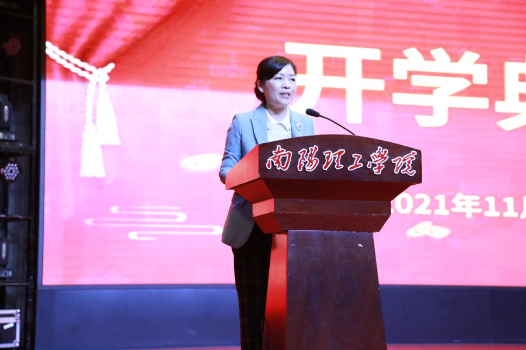 教师代表郭青为同学们提出宝贵建议,希望他们在大学做时间的主人,心怀梦想,不丢信仰,做心中有爱,眼里有光的大学生。