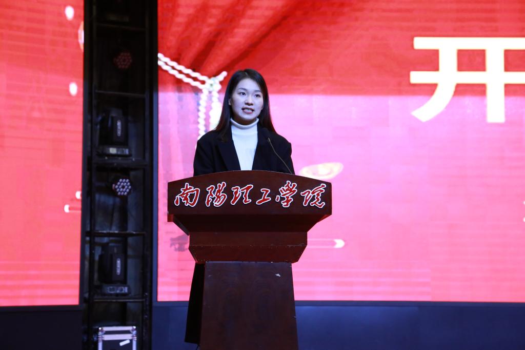 在校学生代表宋鑫鑫结合自身学习和学生干部工作经历,激励学弟学妹们在未来四年脚踏实地、锐意进取。