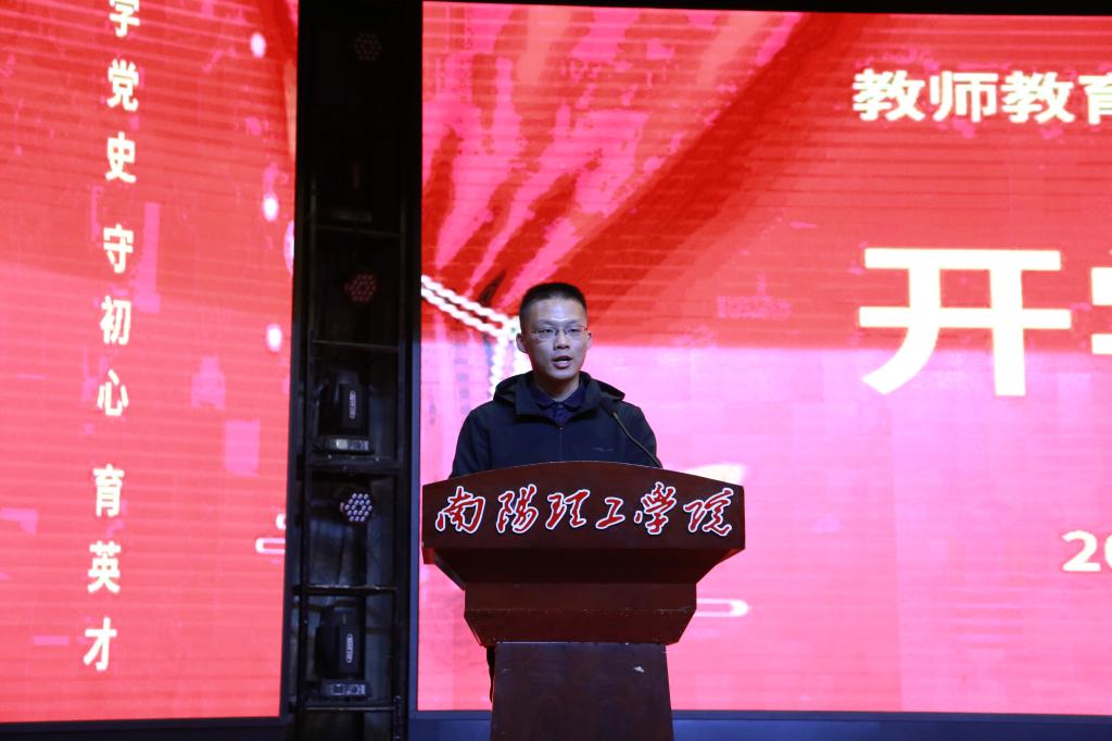 新生代表许赫在发言中表示,要牢记“学深为师,品正为范”的叮嘱,在大学里要敢于追梦,积极挑战自己,争做新时代青年。