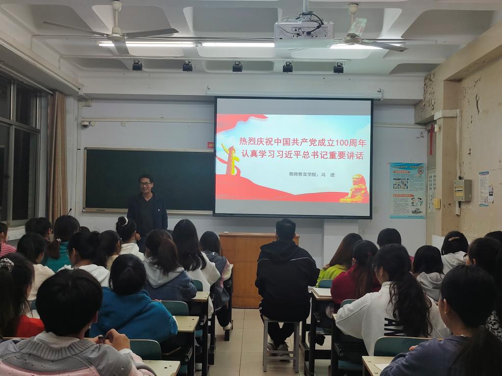 本网讯(特约记者/赵尊 学生记者/张文娜)为持续推进党史学习教育走深走实,引导广大学生切实做到学党史、悟思想,10月11日,教师教育学院党委书记冯建为学院第48期入党积极分子讲授学习“七一”讲话精神专题党课,100余名入党积极分子参加学习。