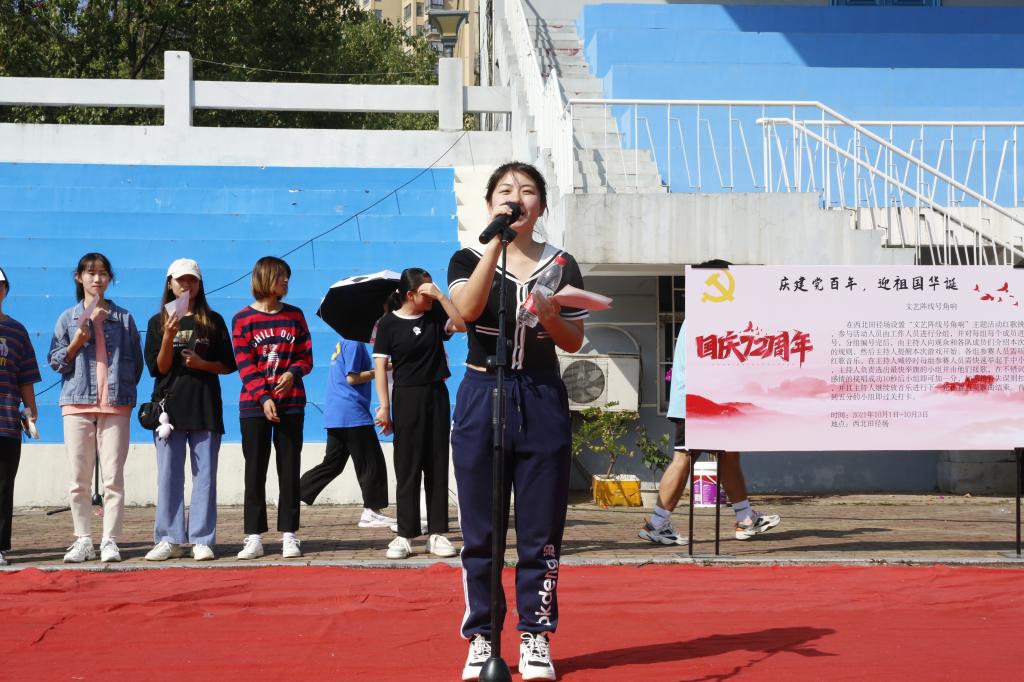 本网讯(特约记者/何雷雨 学生记者/张文娜)庆建党百年,迎祖国华诞。10月1日—10月3日,由党委学生工作部主办、教师教育学院承办的红歌接力赛在西北校区田径场举行,本次活动的主题为“文艺阵线号角响”。全体在校学生积极参与。