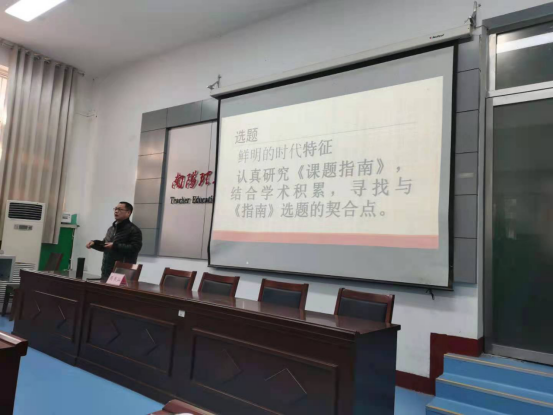 周书灿教授从事先秦史、考古学、历史地理学与中国学术史等多领域的研究,先后主持国家社科基金项目3项,参与国家社科基金首届重大招标项目、河北省哲学社会科学基金等重点项目。本期讲座,他以“如何申报基金项目”为主题,从国家社科基金项目的指导思想、选题、问题导向、创新意识、论证等五个方面全面解读了申报基金项目的具体做法和注意事项。周教授讲到,选题要有鲜明的时代特征,要认真研究《课题指南》,结合学术积累,寻找与《指南》选题的契合点,还就发现问题的方法进行了阐述。
