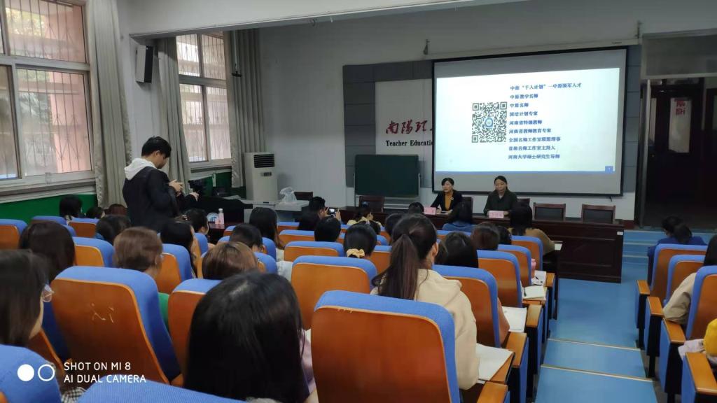 本网讯(特约记者/李冬霞)11月12日,教师教育学院在七一校区阶梯教室举办第26、27期“师苑大讲堂”,特别邀请河南省中原名师李付晓、刘娟娟为2019级小学教育专业学生做专题讲座。大讲堂由教师教育学院院长王岩主持,部分教师代表参加。