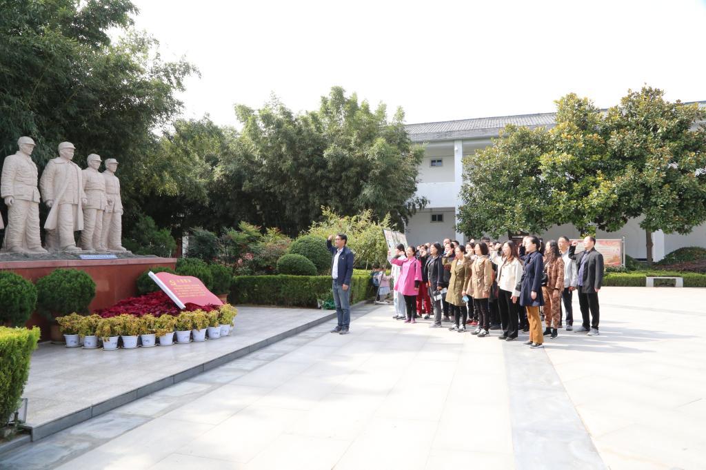 本网讯(特约记者/赵尊)为发扬革命传统,传承红色基因,进一步激发党员队伍的凝聚力和战斗力,增强党员教育的针对性和有效性。近日,教师教育学院党委组织党员一行30余人,在党委书记冯建的带领下,赴确山县竹沟革命纪念馆开展主题党日活动,参观学习老一辈革命家的先进事迹,接受红色教育,重温入党誓词,回顾党的丰功伟绩。