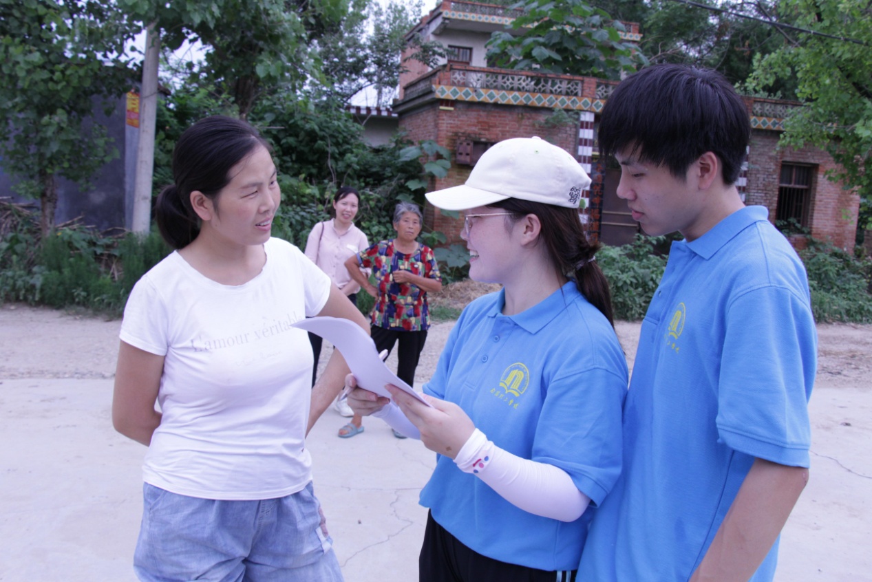 图为志愿者走访当地村庄,询问村民家庭情况并进行幼儿家庭教育问卷调查。当地村民积极配合,志愿者认真解释问卷内容。