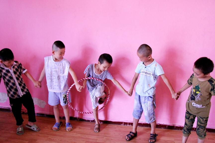 图为孩子们不亦乐乎地玩着“梦想圈”游戏,小小的呼啦圈,连接的是团结和友爱 ,传递的是勇气和力量……小小呼啦圈,玩出大乐趣。