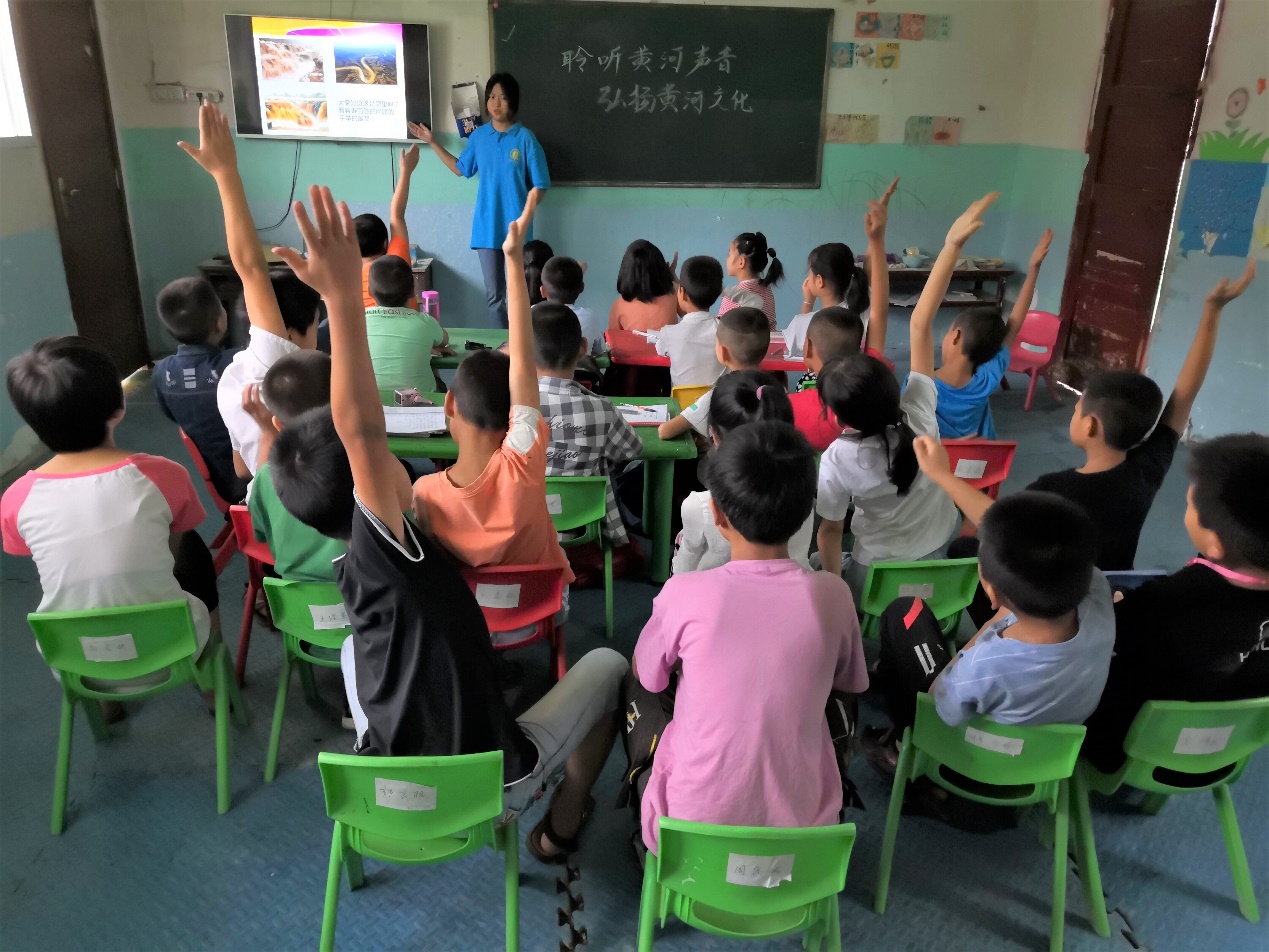 黄河文化的弘扬和倡导,是对中华文明的承接。志愿者特地走进课堂,给同学们带去了一节黄河文化普及课。讲述黄河故事加深同学们对黄河文化的理解;和同学们一起背诵有关黄河的诗词……在欢声笑语中,将黄河文化根植于每位同学的心里,让黄河文化得以传承、延续。