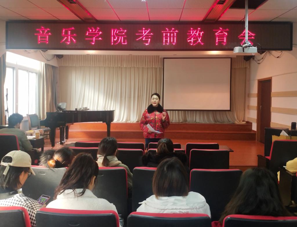 本网讯(通讯员/朱套套)音乐学院于12月16日在12教207多功能厅举办考前教育会。主讲人辅导员刘小婷,17级全体学生参加。