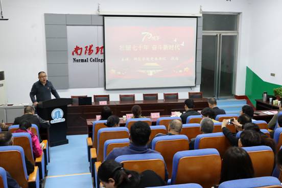 10月8日,师范学院党委书记段焰以《壮丽七十年,奋斗新时代》为题在师范学院阶梯教室讲授主题教育专题党课,师范学院全体师生党员参加学习。