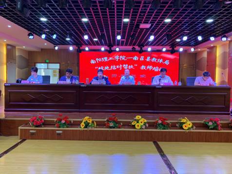 时维九月,序属三秋。在全国人民喜迎共和国70华诞之际,2019年9月21日,南阳理工学院与南召县教体局“校地结对帮扶”教师培训在南召县城关镇一小、云阳镇第一初级中学同时举行。参加本次培训的南召县中小学、幼儿园教师近2000人。南阳理工学院副校长张伟、副校长肖泽昌、南召县政协党组书记张三让、县人大党组副书记苗保旺等领导出席开班仪式并讲话。南召县教体局纪检书记边玲、副主任科员王宏伟分别主持开班仪式。