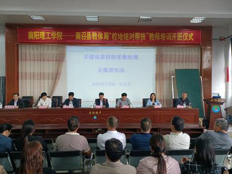 开班仪式上,张校长、肖校长指出,为助力全省如期打赢精准脱贫攻坚战,我校充分发挥自身优势,紧紧围绕“智力帮扶、科技帮扶、培训帮扶、人才帮扶、产销帮扶”,积极实施“校地结对帮扶”精准扶贫行动。这次与南召县教体局联合举办教师培训既是南阳理工学院与南召县“校地结对帮扶”精准扶贫行动中的一个具体项目,也是南阳理工学院不忘初心,服务地方的使命和义务。