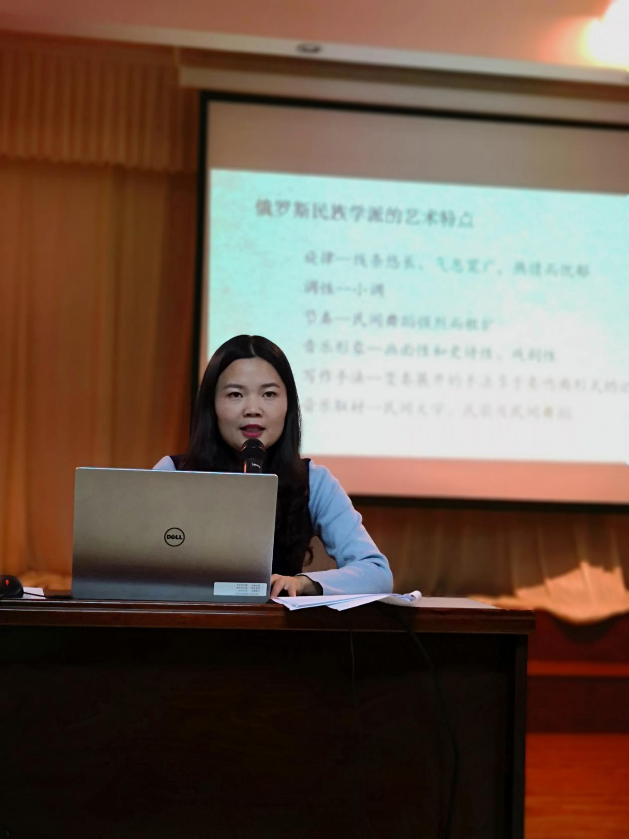 本场讲座的两位主讲人均为近期结束海外留学返校教师。讲座首先由刘帅老师开讲,她首先对俄罗斯钢琴学派概况及其教学特色进行了宏观而细腻的阐述,着重针对俄罗斯钢琴学派柴可夫斯基、拉赫玛尼诺夫、斯克里亚宾等代表人物的生平及创作风格特征进行细致讲述,并结合钢琴家演奏视频讲解,让现场的师生更好领会到了俄罗斯钢琴学派的演奏风格和艺术特征。