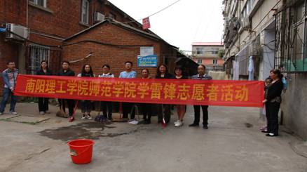 为加深对新时期雷锋精神的认识和理解,促使教职工自觉主动的践行和传递雷锋精神,4月15日上午,师范学院教职工16人带着扫帚、灰斗、抹布等卫生工具到塔园社区七一路的几个家属院,开展了以“清洁家园,美化环境”为主题的学雷锋志愿活动。