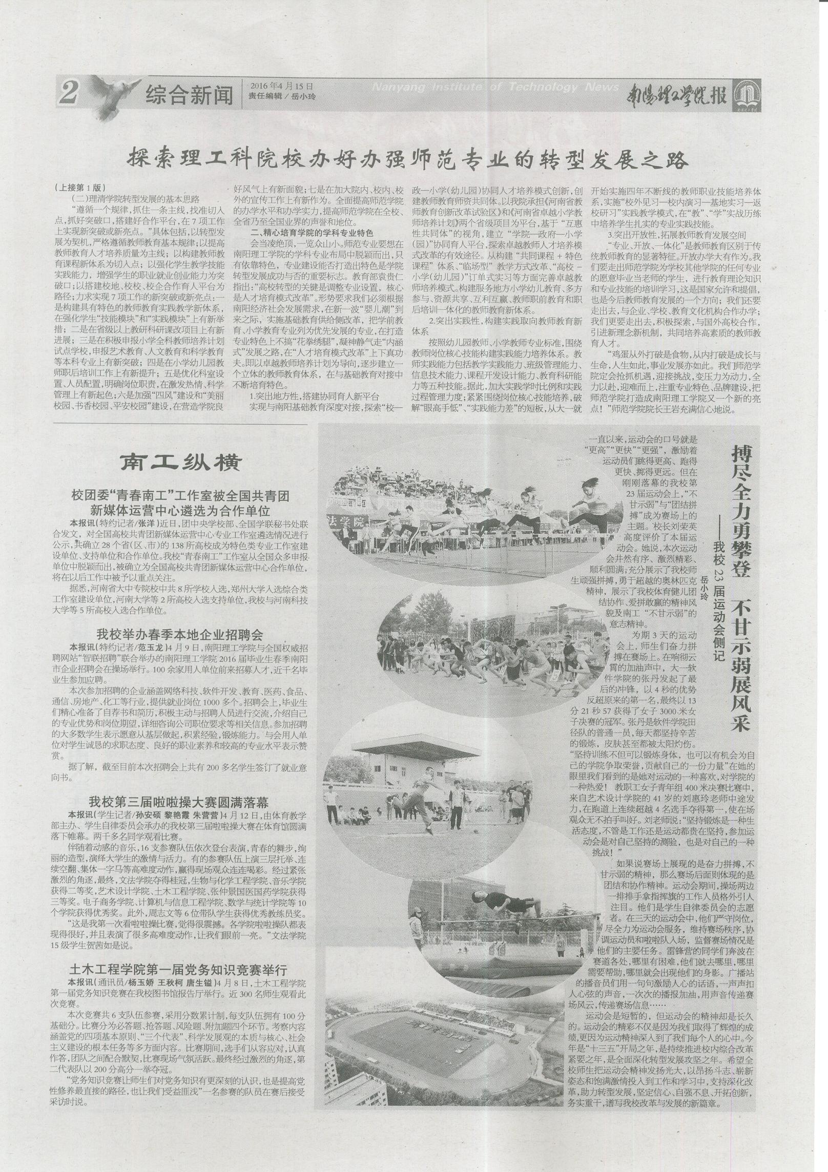 来源:南阳理工学院报 2016年4月15日第一版、第二版(原文如下)