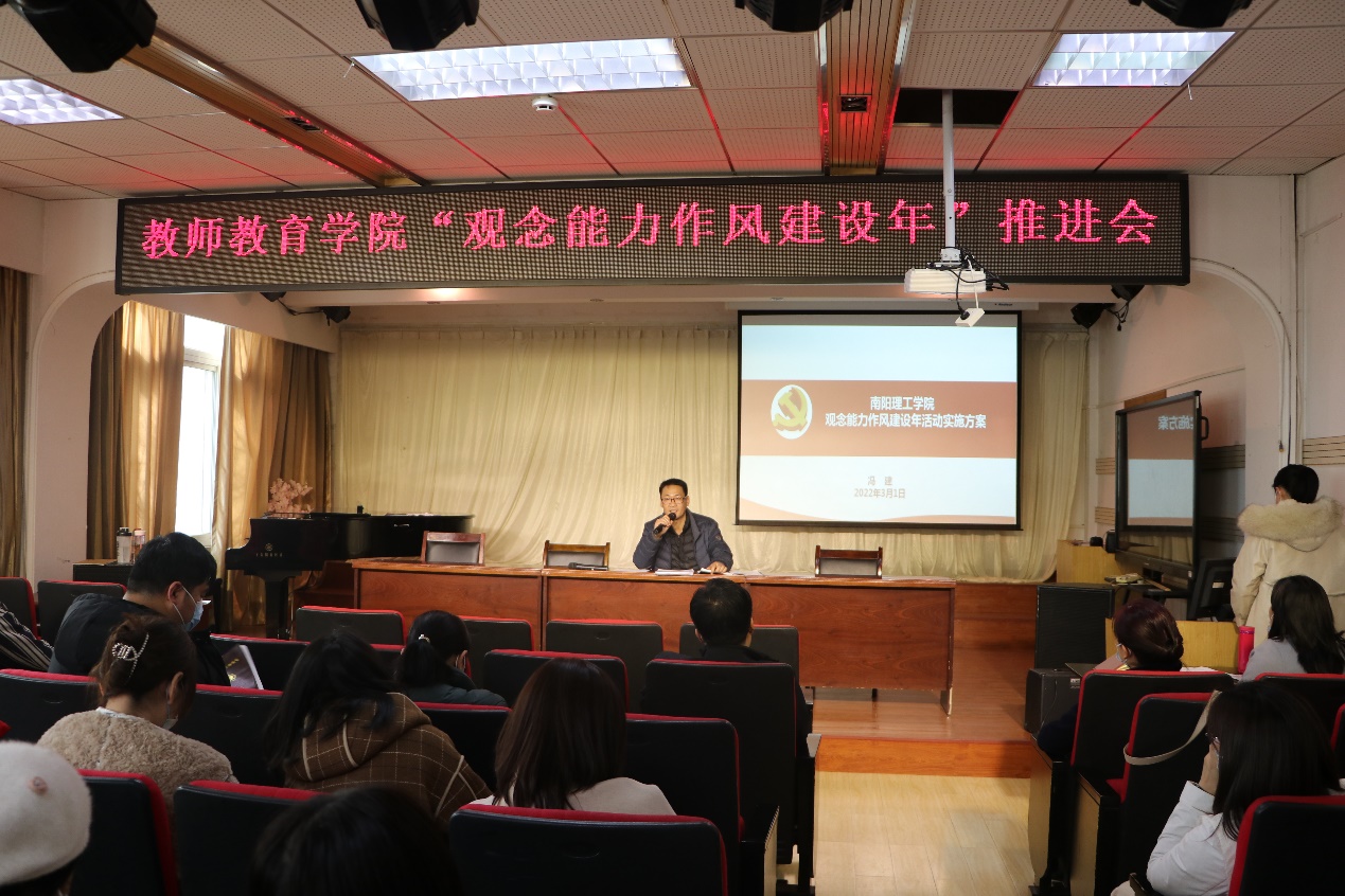本网讯(特约记者/何雷雨)为进一步贯彻落实省委、省委高校工委“能力作风建设年”和市委、校党委“观念能力作风建设年”活动实施方案精神要求。3月1日,教师教育学院召开“观念能力作风建设年”活动推进会。学院领导班子和全体教职工出席参加会议。会议由学院党委书记冯建主持。