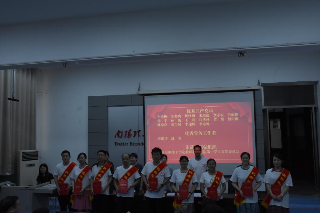随后,学院领导宣读教师教育学院优秀共产党员、优秀党务工作者和先进基层党组织人员名单,并进行颁奖。颁奖结束后,各位党员一同重温入党誓词,雄壮的宣誓声进一步激励了支部党员坚定爱党信念,牢记职责使命。