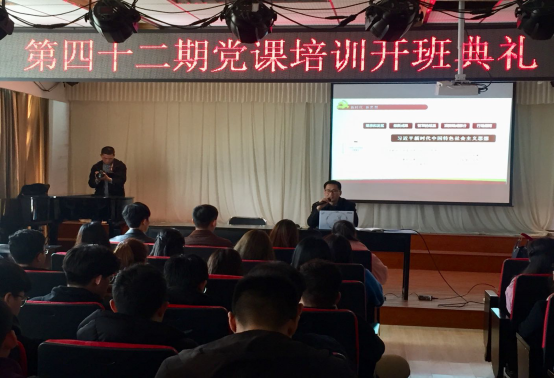在开班仪式上,冯建对参加第42期党课培训的学员们表示祝贺!他指出,作为入党积极分子,要端正态度,要有坚定的共产主义信仰和扎实的政治理论知识,要加强学习,从思想上、行动上主动向党组织靠拢。在《共产党员的责任担当》专题培训中,冯建分别从入党誓词、习近平新时代中国特色社会主义的历史地位、党的发展历史、党员的权利和义务等四个部分,结合同学们的专业学习和生活情况,阐述了一名合格共产党员如何在学习和生活中充分发挥党员先锋模范作用,切实肩负起共产党员的责任担当。