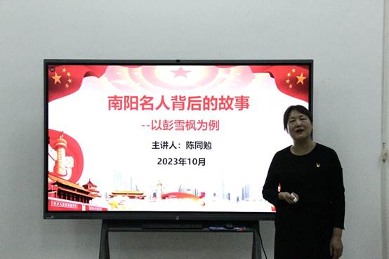 本次授课主要分为三部分,分别是南阳名人简介、彭雪枫个人经历和对大学生成长启示。陈同勉从对2008年感动中国人物—抗洪救灾英雄武文斌、2015年获得全国道德模范提名奖的“托举三兄弟”—贾晓玉、刘新军、杨明、“模范老师”张玉滚等人物的介绍开篇,重在告诉入党积极分子肩上的责任与担当,并要求他们要具备全心全意为人民服务的思想品格,同时要做好模范表率作用。
