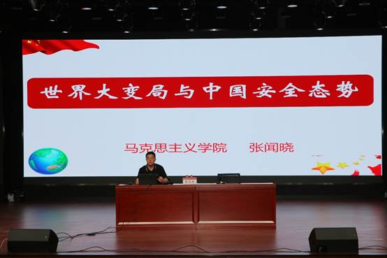 本网讯(记者/何雷雨)为深入开展学习贯彻习近平新时代中国特色社会主义思想主题教育,“七一”前夕,教师教育学院联合传媒学院等单位在东校区21教演播厅开展“学思想、强党性、重实践、建新功”专题培训。6月27日上午,马克思主义学院形势与政策教研室主任张闻晓以“世界大变局与中国安全态势”为题进行第二讲。