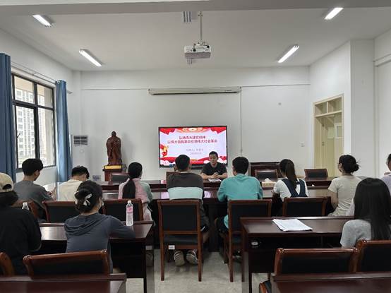 本网讯(学生记者/赵昊)为帮助入党积极分子全面、系统、深入学习领会党的二十大精神,2023年5月31日,教师教育学院在22教215开展主题党课培训。本次党课由我院第一学生党支部书记何雷雨担任主讲,第51期入党积极分子参加培训。