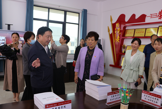 会前,与会人员莅临我院现场考察党建工作。在我院学生党员的讲解指引下,与会人员听取了教师教育学院历史沿革、学院党委概况和推动党建与业务双融双促典型做法以及党建事业发展新成效的介绍,并实地查看了我院党建工作展板、党建工作站、党员活动室和党建风采、中国精神、廉政文化党建背景墙等软硬件设施。