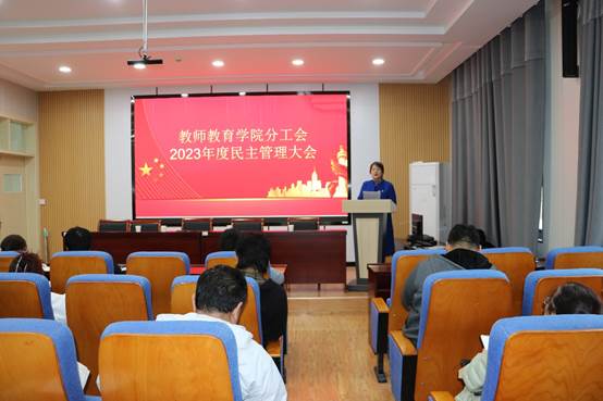 党委副书记陈同勉向大会作《教师教育学院工会工作报告》,汇报了2022年度教师教育学院分工会收支情况及工作开展情况。(校对/陈同勉 审核/王岩)