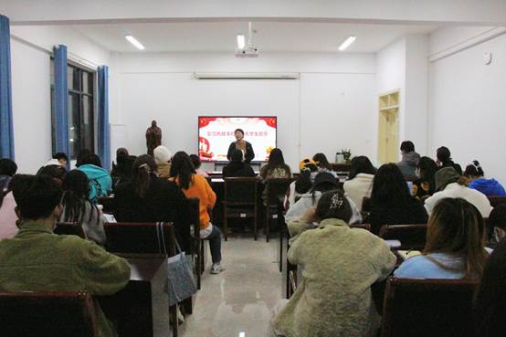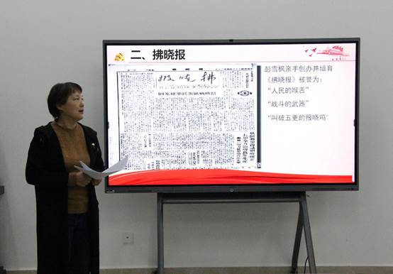 陈同勉从“个人介绍”“生平故事”“成长启示”“二十大报告中提到的精神”四部分开展培训,言语之间无不表达出她对彭雪枫的敬仰之情和对同学们的殷切期望。陈同勉鼓励同学们从彭雪枫的故事和党的二十大报告中汲取力量,把个人命运与国家前途相连,做到知行合一、对党忠诚、敢于担当,用实际行动报效国家。