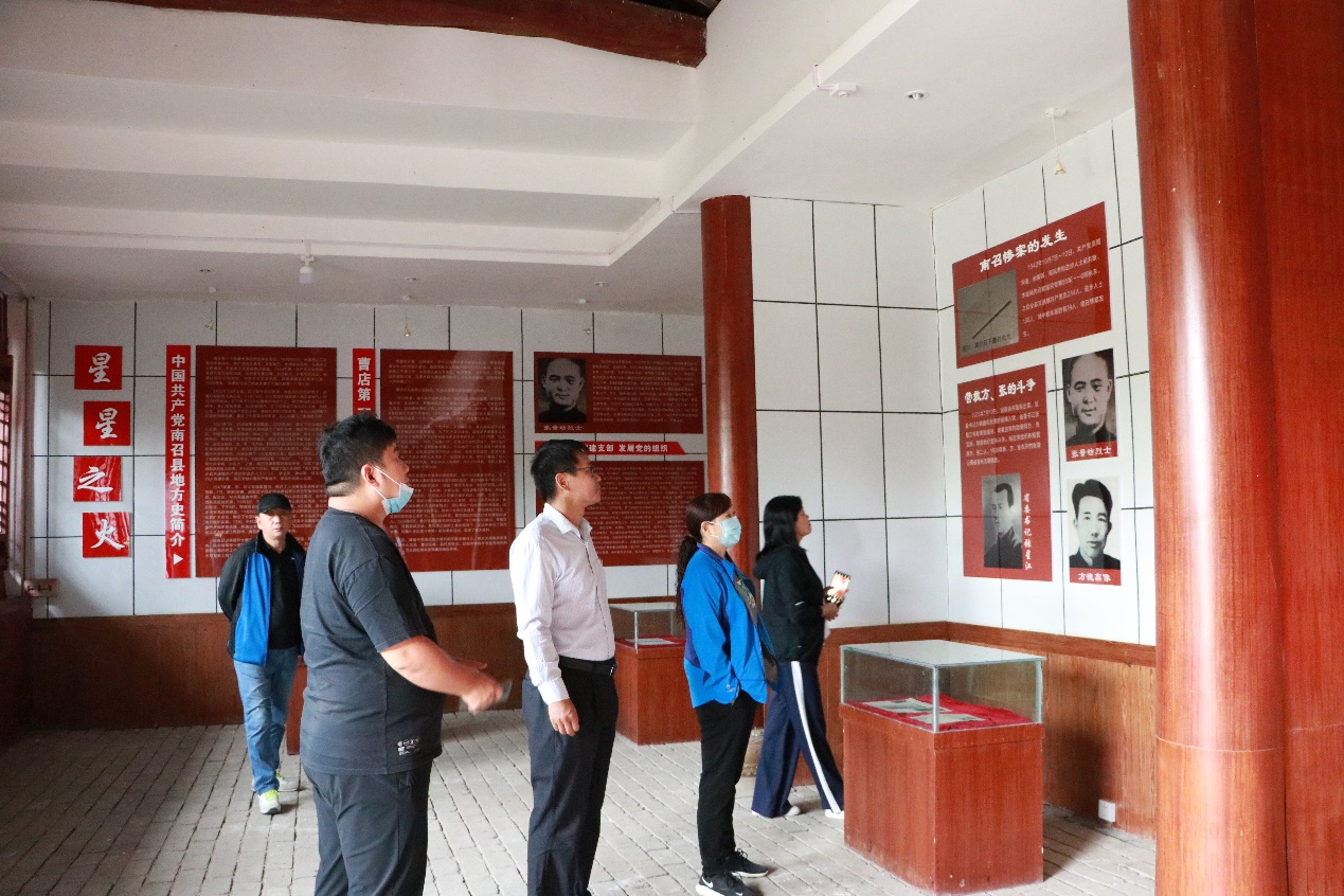 在南召县这块被烈士鲜血染红的土地上,曾留下了贺龙、秦基伟、陈先瑞等老一辈革命的闪光足迹。1930年春,张景昉同志在曹店村建立了中国共产党南召县第一个党小组,同年12月,创建了南召县第一个中共支部——中共曹店支部。纪念馆里的一张张照片,记录着一代代共产党人艰苦奋斗的历史足迹,让大家真切的了解了那段峥嵘岁月。参观结束后,学院党委书记冯建带领全体党员紧握右拳,重温入党誓词,铿锵的誓词,坚定的承诺,让每一位党员的心灵再次受到震撼和洗礼。