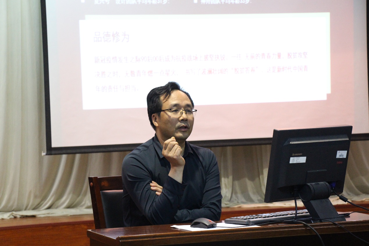 钞艺伟以“做担当民族复兴大任的新时代新青年”为主题,从树立远大理想、热爱伟大祖国、担当时代重任、勇于砥砺奋斗、练就过硬本领、锤炼品德修为六方面为切入点展开授课,着重强调了新时代青年的使命、职责及如何提升自身素质。他指出,党员发展对象和入党积极分子应在学习、工作和生活等方面,通过自己的带头作用影响并带动周围同学积极进取、勇于奉献。