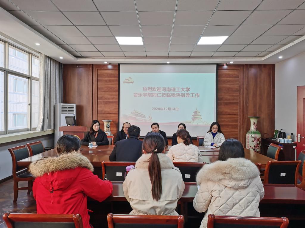 12月14日,河南理工大学音乐学院党总支副书记王建军、副院长马安平一行5人到我院考察调研。学院院长王岩、党委书记冯建、副院长周凤瑾及教师代表参加了座谈会。