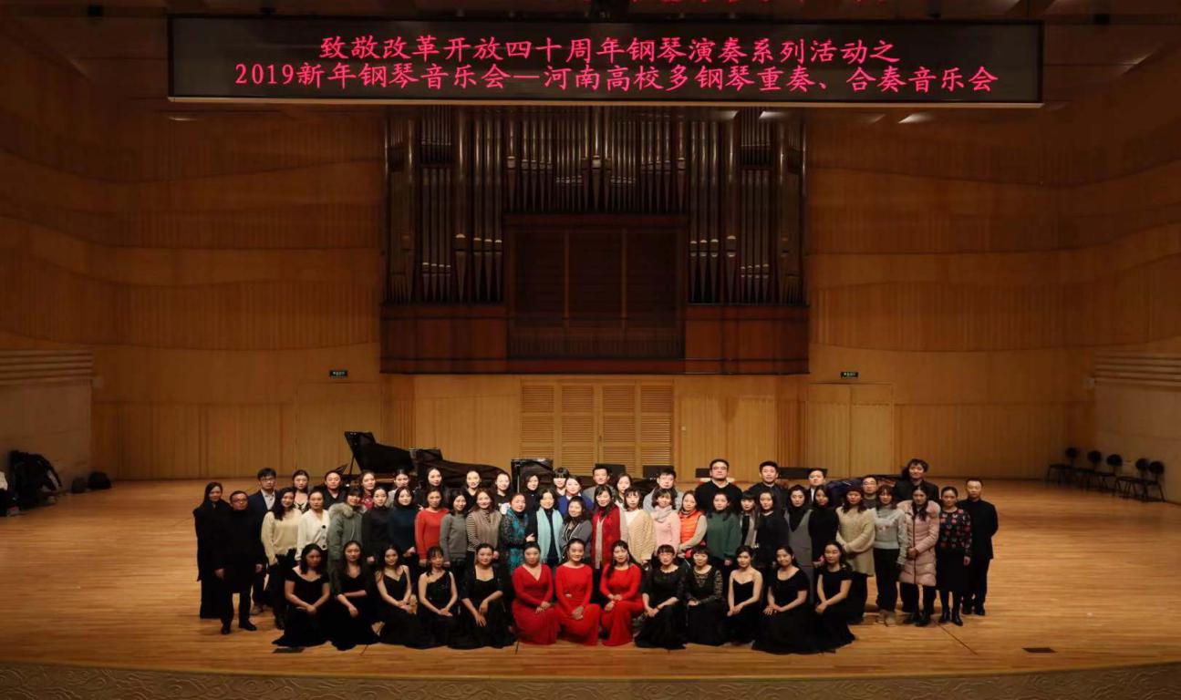 12月30日晚19:30致敬改革开放四十周年钢琴演奏系列活动之2019新年钢琴音乐会——河南高校多钢琴重奏、合奏音乐会在河南省艺术中心音乐厅举行。我校音乐学院舒甜、聂一波、彭艳、王侃、胡青五位老师演奏的《丝路》获得圆满成功!