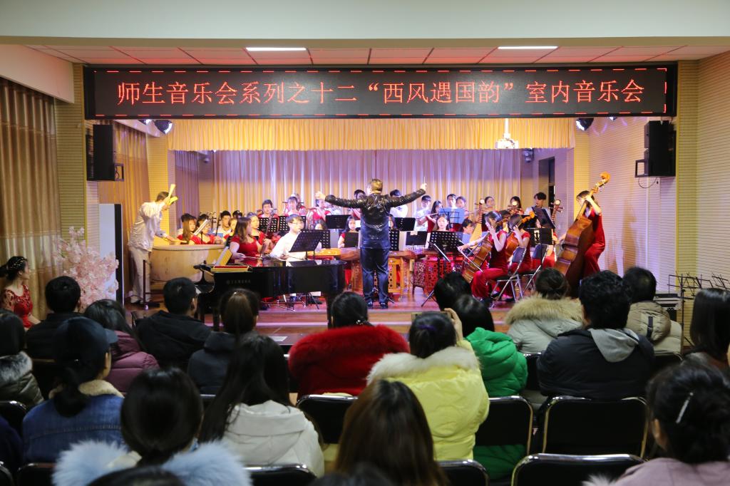 本网讯(通讯员/孙慧云)用音符承载期许、用乐器传递祝福。12月18日,音乐学院在409多功能厅举办“西风遇国韵”室内师生音乐会。学院全体班子成员及师生出席音乐会。