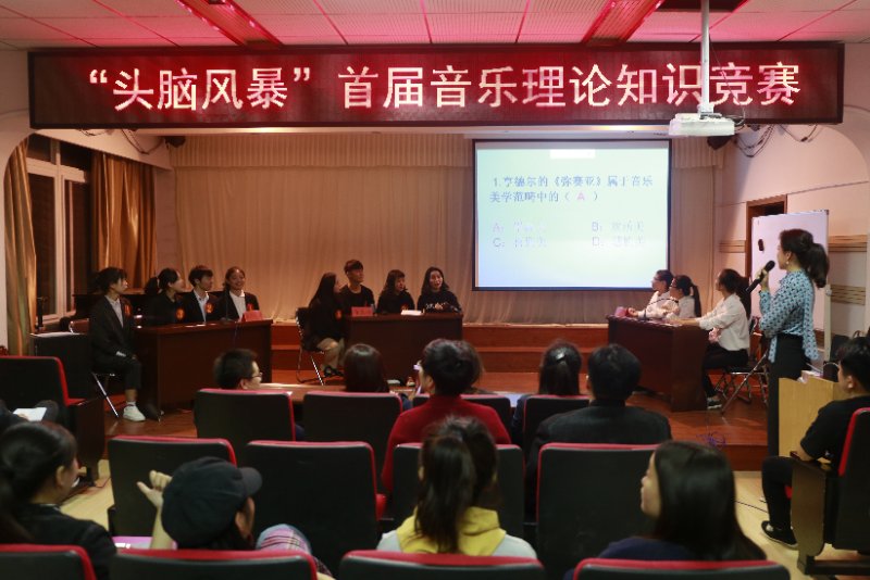 本网讯(通讯员/郭灵雅)10月31日晚,音乐学院于207多功能厅举办“头脑风暴”首届音乐理论知识竞赛,该活动由音乐理论教研室承办。出席的领导老师有院长李存、副院长钞艺伟,理论教研室全体教师,近百名学生观看。