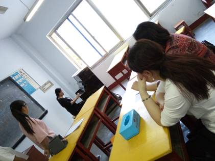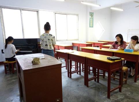 紧接着8日下午,最后一项弹唱技能也紧张有序的进行着,同学们一个个自信的抽题、弹唱,一连串优美的旋律和歌声便环绕整个教室。钞老师耐心温柔的指出每位同学的优点与不足,尽管身体不适嗓子哑了还在尽量用正确的发声来指导每位同学,深深地感觉到老师对学生满满的关爱在那一刻闪闪发光照亮整个教室。