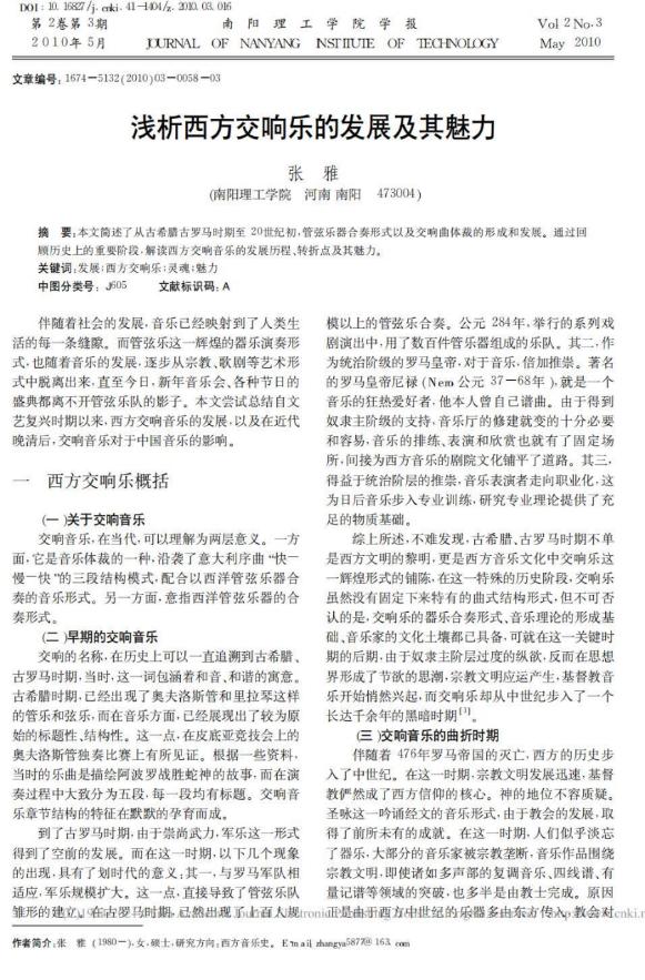 16.浅析西方交响乐的发展及其魅力 南阳理工学院学报