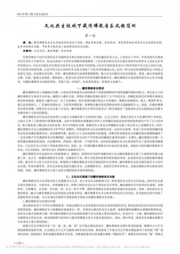 10.文化共生视域下藏传佛教音乐风格简析 音乐创作 北大核心