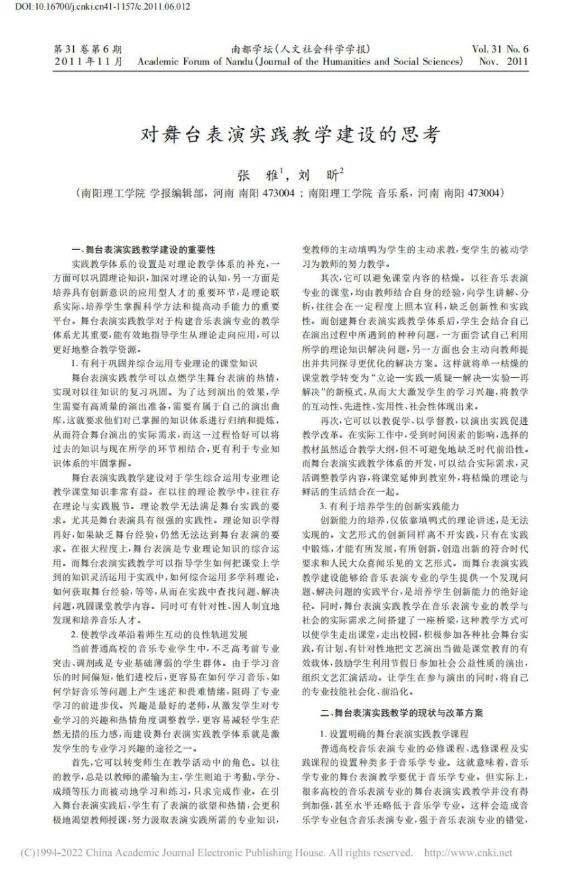 17.对舞台表演实践教学建设的若干思考《南都学坛》