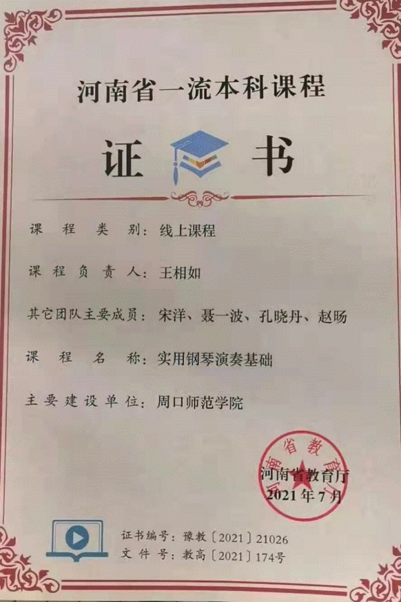 6.《实用钢琴演奏基础》河南省教育厅 河南省一流本科课程