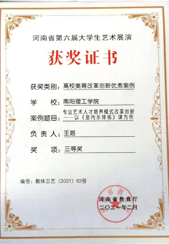 14.河南省第六届大学生艺术展演高校美育改革创新优秀案例三等奖 河南省教育厅