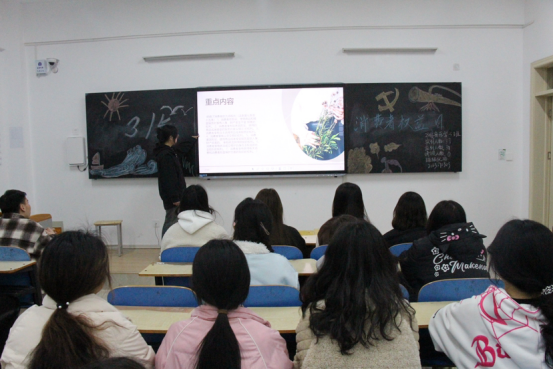 本网讯(学生记者/张萱)为提高同学们的消费者权益保护意识,普及相关法律法规知识。2024年3月17日,教师教育学院在22教开展“3·15”消费者权益日普法主题班会,全院学生积极参与。