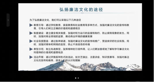 为积极响应2023年度12.9全国大学生廉洁教育月系列活动的号召,11月28日由学生会优秀骨干组成的廉洁教育小课堂宣讲团,开展了以“廉洁文化宣传”为主题的线上教育活动。