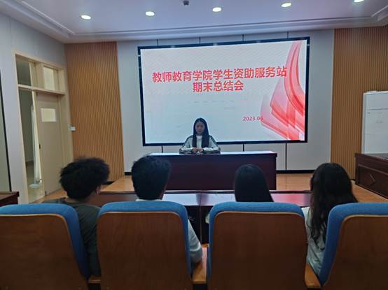 本网讯(特约记者/黄颖玉)为总结经验,更好地开展我院资助工作。2023年6月16日下午,教师教育学院学生资助服务站全体成员在23号教学楼306举行2022-2023学年期末总结会,学院资助专干黄颖玉主持本次会议。